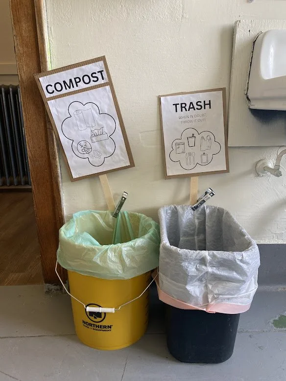 Bathrooms have two bins: compost and trash.